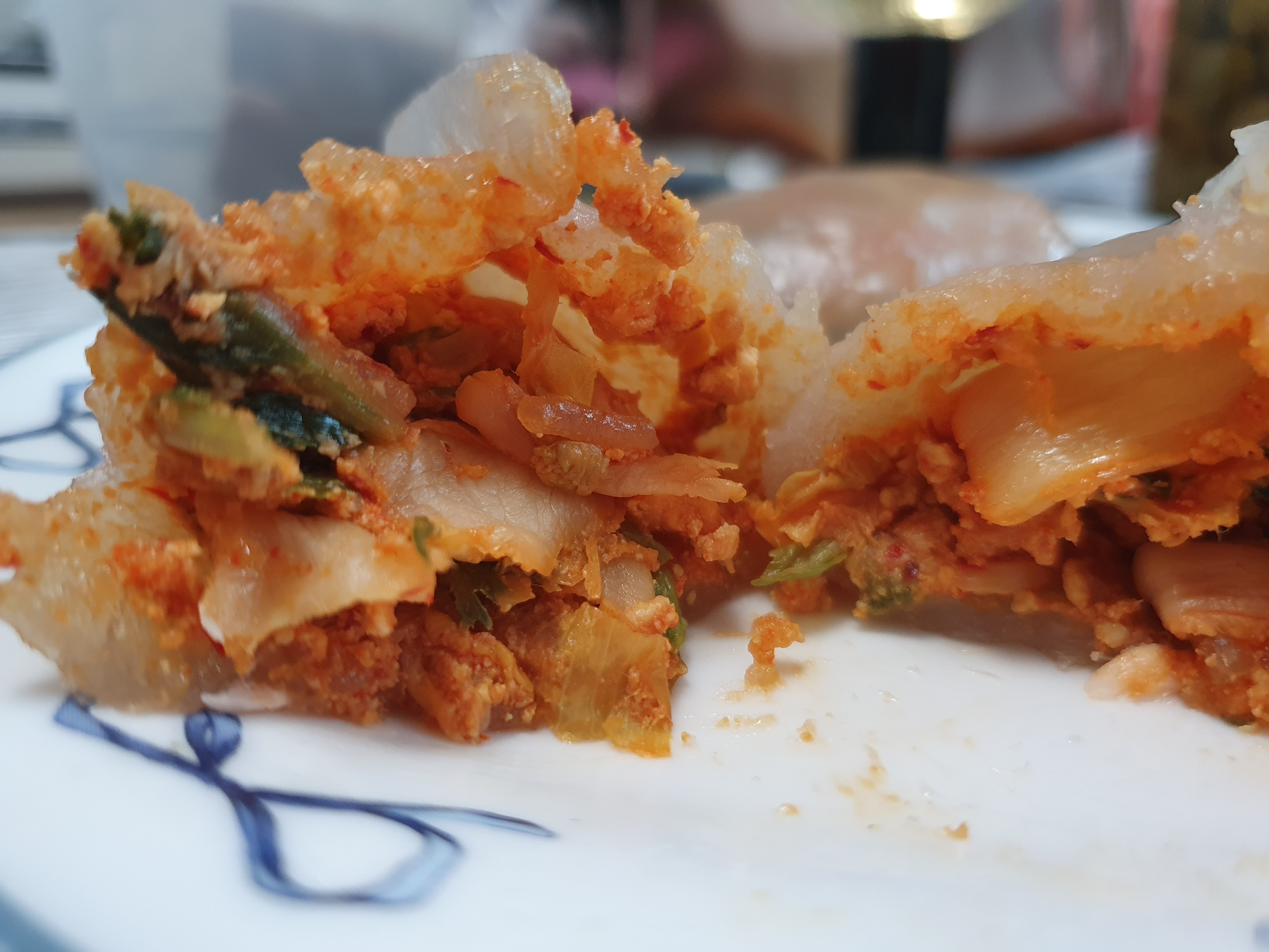 고기는 들어 있지 않은 야채만두를 찾아서 기쁘다 김치만두의 속이 튼실하게 채워져 있다